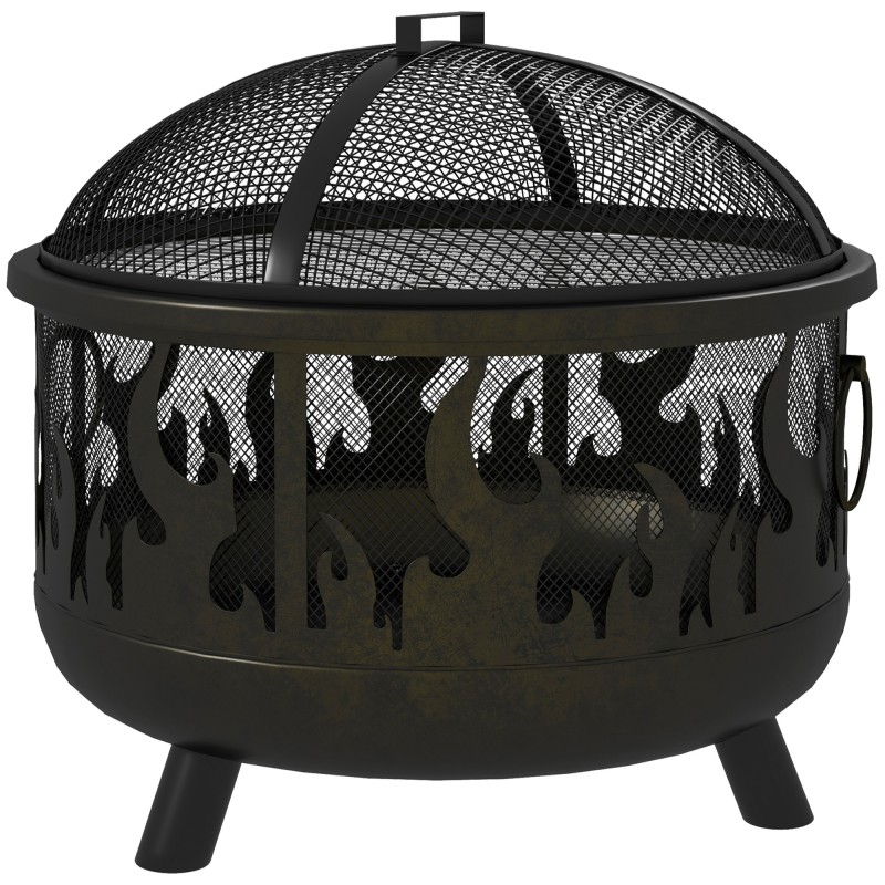 Tulisija ja tulipesä ulkokäyttöön, terästä, Ø61 cm, kipinäsuoja ja grilliritilä, musta