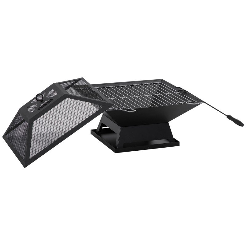 Tulisija ja tulisija-grilli terästä 45 x 45 x 34 cm kipinäsuojalla ja tarvikkeilla musta