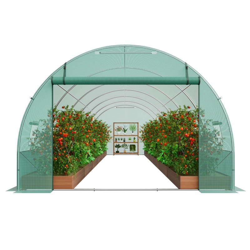 Paksun sinkityn teräsputkirungon ja kestävän PE-peitteen ansiosta tämä tunnelikasvihuone tarjoaa vahvan ja pitkäikäisen suojan kasveille. Tilava sisätila sopii monenlaiseen viljelyyn ja auttaa luomaan kasveille miellyttävän kasvuympäristön.