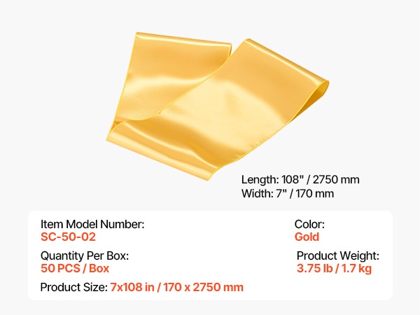 Kiiltävästä 33gsm satiinista valmistetut tuolinauhat ovat sileitä, rypistymistä kestäviä ja helppoja solmia näyttäviksi ruseteiksi. Vahvistetut reunat ja 275 x 17 cm yleismitta tekevät niistä sopivat häihin, juhliin ja muihin tilaisuuksiin. Pakkauskoko sopii hyvin suurempiin tapahtumiin.