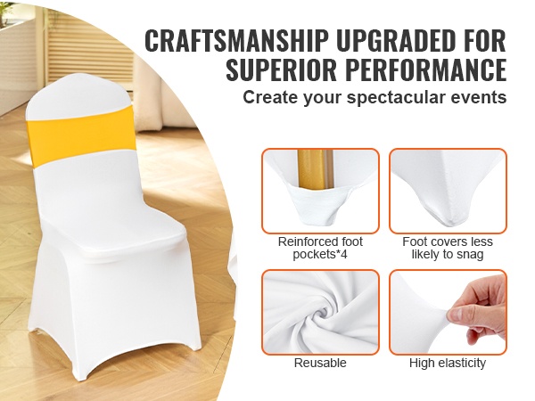 - Universaali istuvuus useimpiin juhla- ja bankettituoleihin