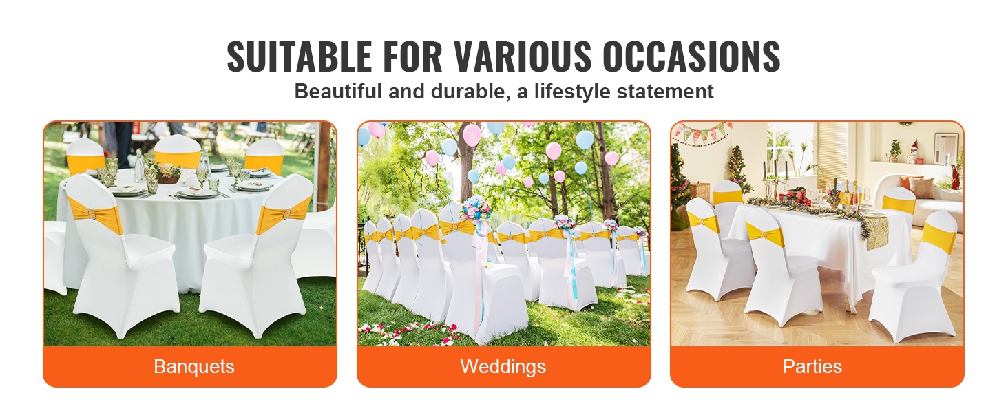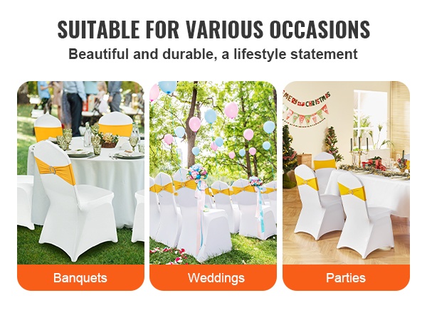 - Pakkausmäärä: 50 kpl, sopii useiden tuolien kattamiseen samassa tilaisuudessa