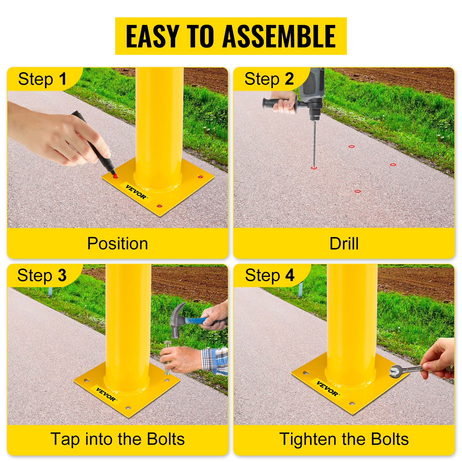 Hitsattu rakenne yhdistää teräsputken ja neliömäisen pohjalevyn (sivun pituus 7.87") tukevaksi kokonaisuudeksi. Tämä lisää pollarin vakautta ja pidentää sen käyttöikää kovassakin käytössä.