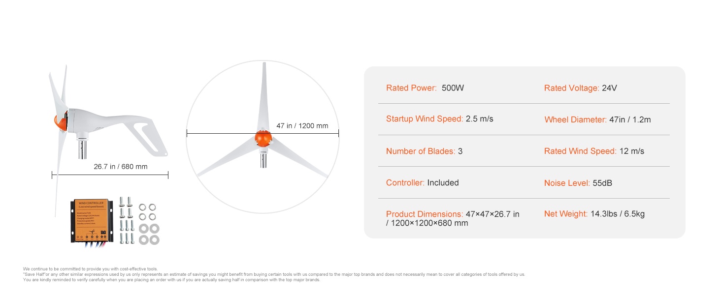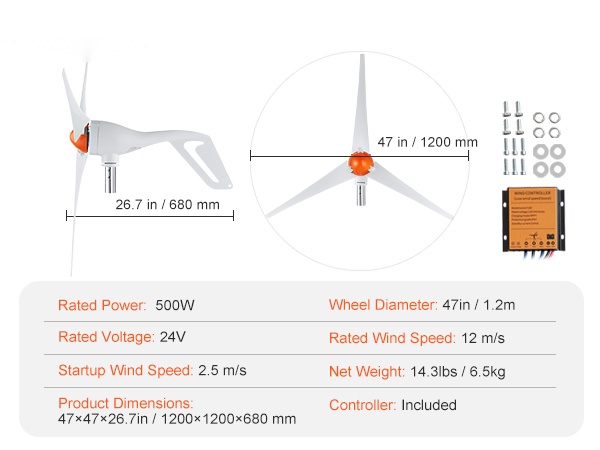 500W tuuligeneraattoripaketti 12V-järjestelmiin. 3-lapainen roottori, mukana anemometri ja MPPT-säädin. Soveltuu esimerkiksi omakotitaloihin, maatiloille, matkailuajoneuvoihin ja veneisiin lisäenergian tuottamiseen.