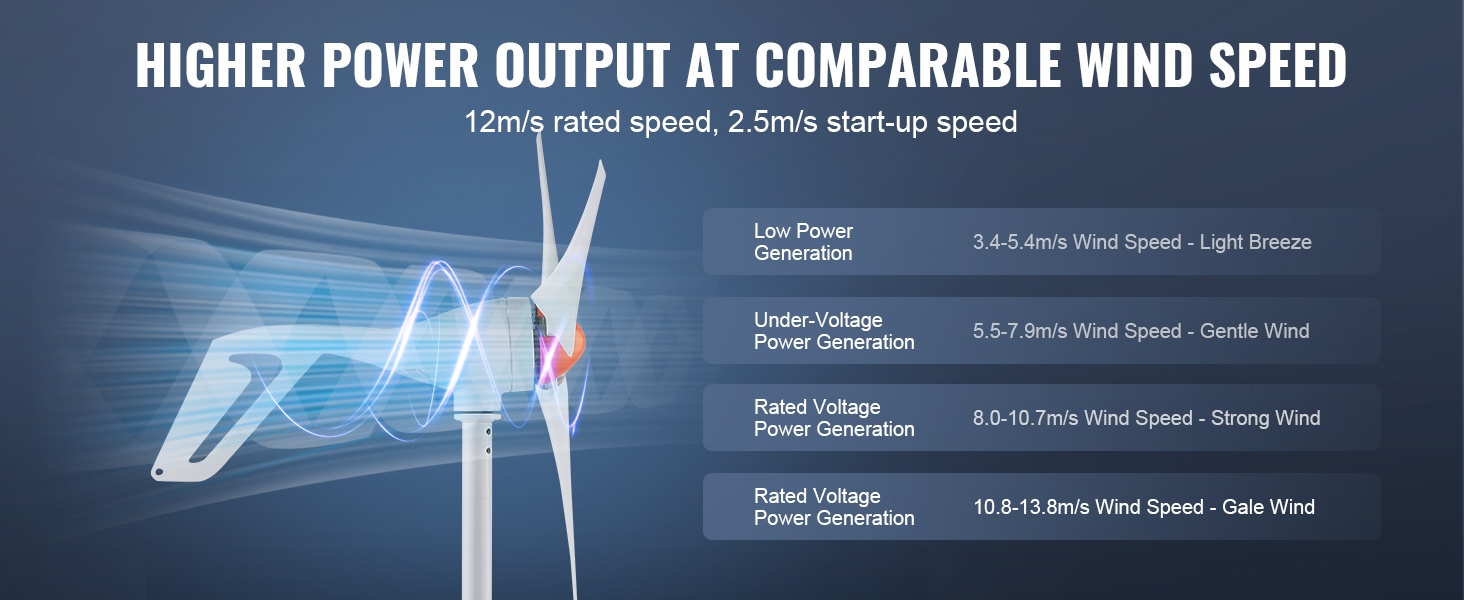 – Alhainen käynnistystuulen nopeus, vain 2.5 m/s