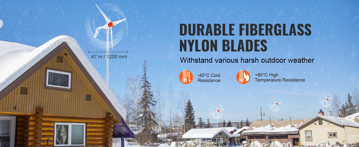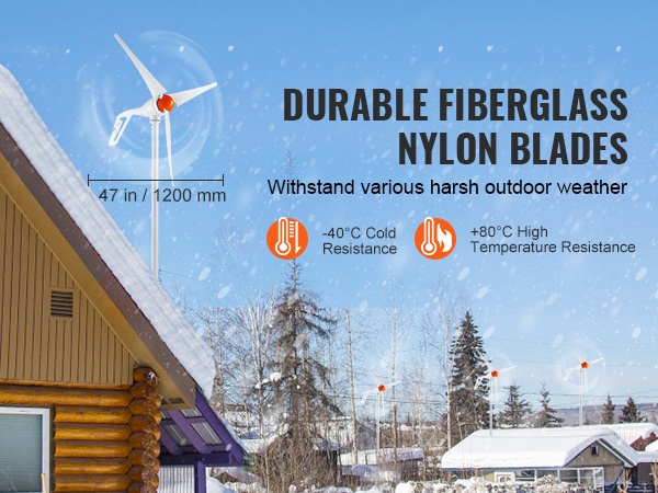 Pystyakselinen tuuligeneraattori 600 watin 12 voltin lyhtymallinen viisilapainen nailonkuitulavoilla