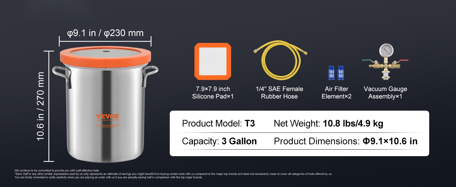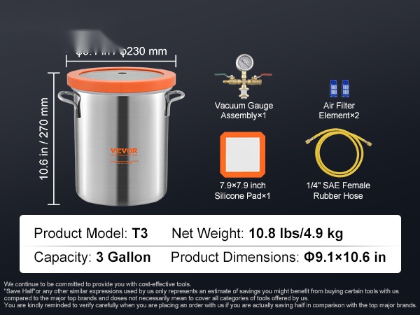 Tyhjiökammio ei vaadi monimutkaista kokoamista. Mukana tulee käytännöllisiä tarvikkeita: kierteitetty pikaliitin tyhjiöpumpun liitäntää varten, 59-tuumainen (noin 150 cm) ylimääräisen pitkä letku, äänentasain hiljaisempaan venttiilin käyttöön sekä integroitu suodatin pölyn pääsyn vähentämiseksi.