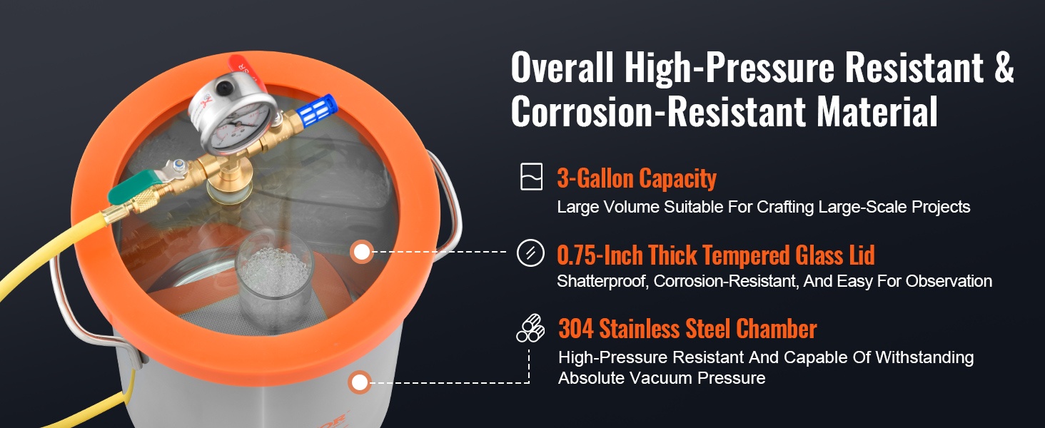 Paksuuntunut akryylirunko tekee tyhjiökammiosta tukevan ja turvallisen käyttää absoluuttisessa tyhjiössä. Läpinäkyvä materiaali mahdollistaa koko tyhjiöinti- ja kaasunpoistoprosessin havainnoinnin ilman kannen avaamista.