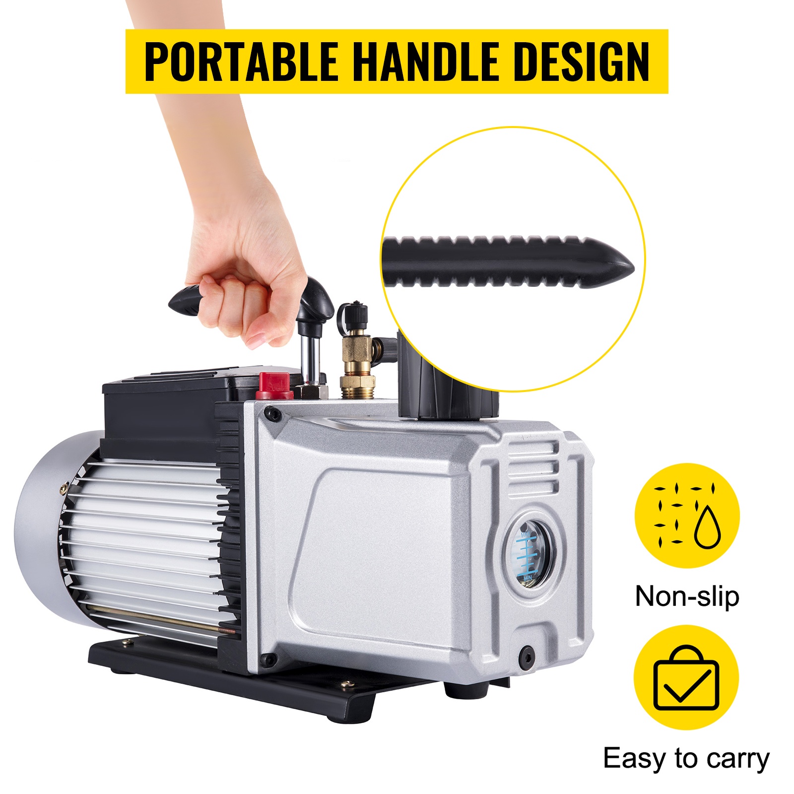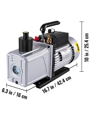 3CFM 1/4HP yksivaiheinen kylmäaine- ja ilmastointikäyttöön tarkoitettu tyhjiöpumppu ja manometrisarja. Tukeva metallipohja kumijaloilla parantaa vakautta. Sopii yleisille kylmäaineille, kuten R12, R134a, R22, R410a, R404, R502 jne. Lapojen materiaali on ilmailulaatuista, öljyn takaisinvirtauksen esto ja pakkovoitelujärjestelmä varmistavat luotettavan käytön. Painevalu-alumiinirunko ja jäähdytystuuletin huolehtivat tehokkaasta lämmönpoistosta.