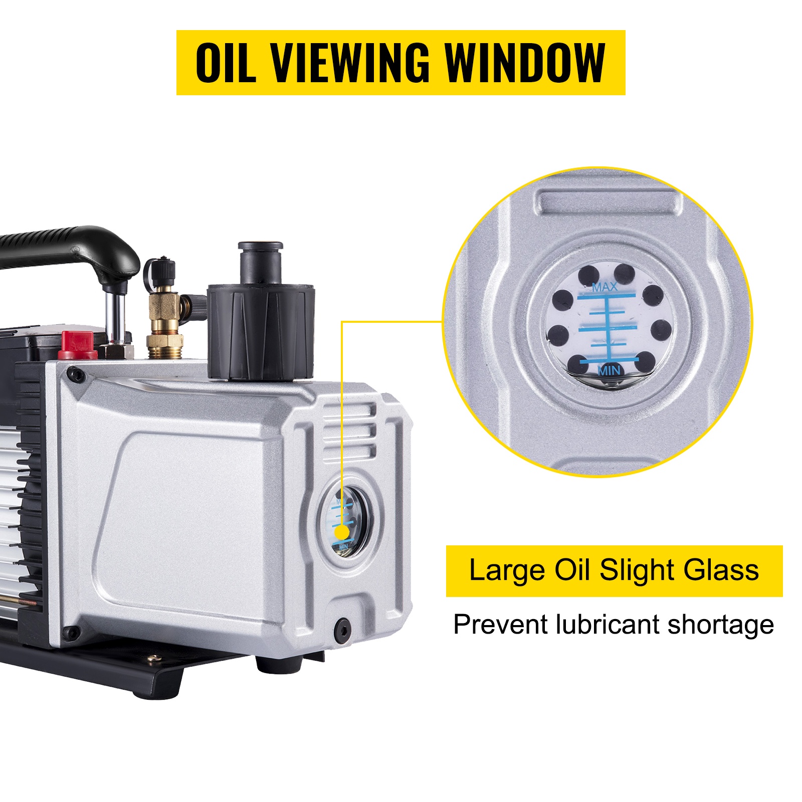 Pumpussa on öljyn tarkistusikkuna, jonka avulla öljymäärää on helppo seurata ja välttää öljyn puutetta. Sisäänrakennettu jäähdytystuuletin ja suunnitellut ilmanpoistoaukot tehostavat lämmön haihtumista ja suojaavat laitetta ylikuumenemiselta.