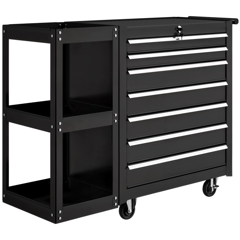 Työkaluvaunu 7 laatikkoa ja irrotettava sivuhylly, teräs, 96 x 33,5 x 75 cm, musta