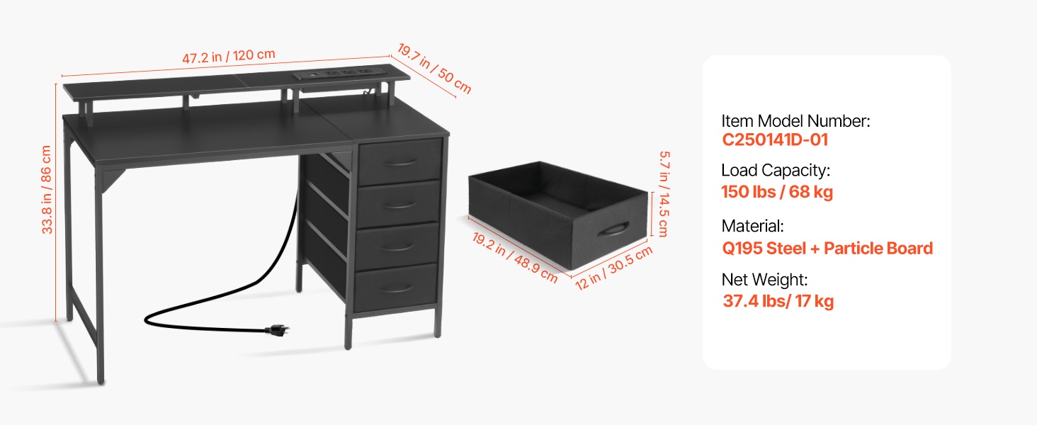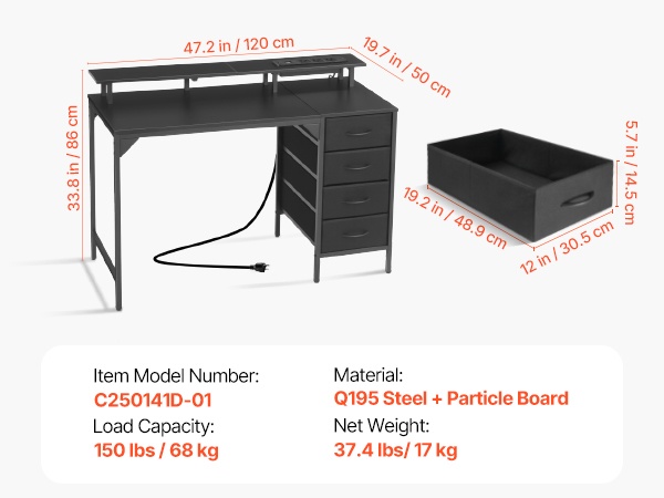 – Tukeva hiiliteräsrunko ja paksu lastulevypöytätaso pitkäaikaiseen käyttöön