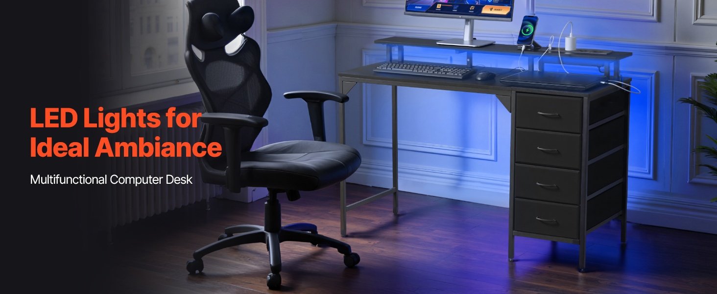 Leveä pöytätaso helpottaa työskentelyä ja opiskelua. Tietokone, asiakirjat, valaisin ja muut toimistotarvikkeet mahtuvat esille ilman ahtautta.