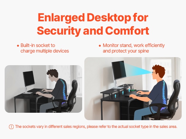 – Tilava 160 x 80 cm pöytätaso tietokoneelle ja työvälineille