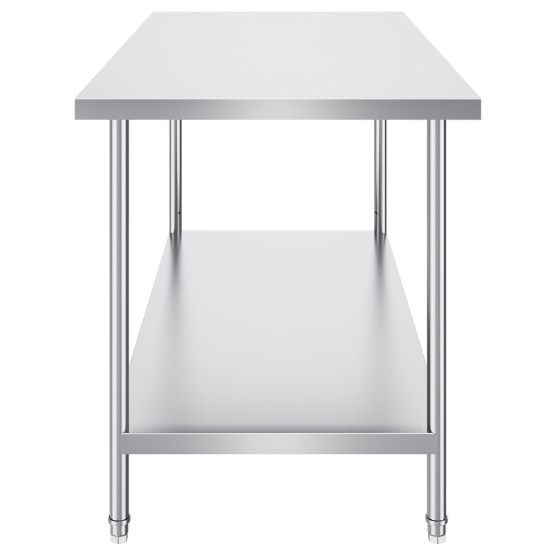 Tämä kestävä metallinen työpöytä sopii niin ammattikeittiöihin kuin kotiin, autotalliin, ravintolaan tai pihalle. Ruostumattomasta teräksestä valmistettu taso ja runko tarjoavat vakaan alustan ruoanvalmistukseen, korjaustöihin ja muuhun työskentelyyn.