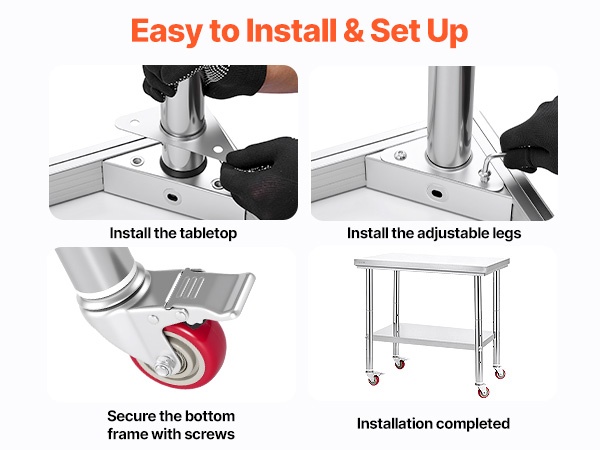 Tämä ruostumattomasta teräksestä valmistettu työpöytä sopii monenlaisiin tiloihin, kuten ammattikeittiöihin, ravintoloihin, hotelleihin, baareihin, koulujen ja sairaaloiden keittiöihin, varastoihin, autotalliin tai ulkokäyttöön. Pöytää voi käyttää sekä valmistelupöytänä että yleisenä työ- tai huoltopöytänä.