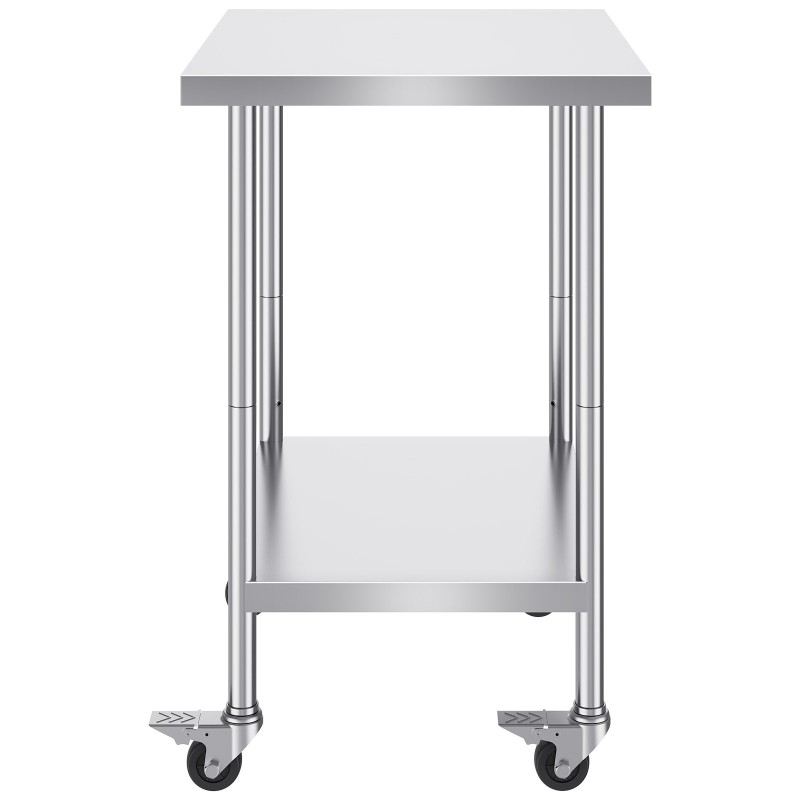 Ruostumaton teräs työpöytä 307x612x862 mm säädettävällä hyllyllä 4 pyörää joista 2 jarrullista