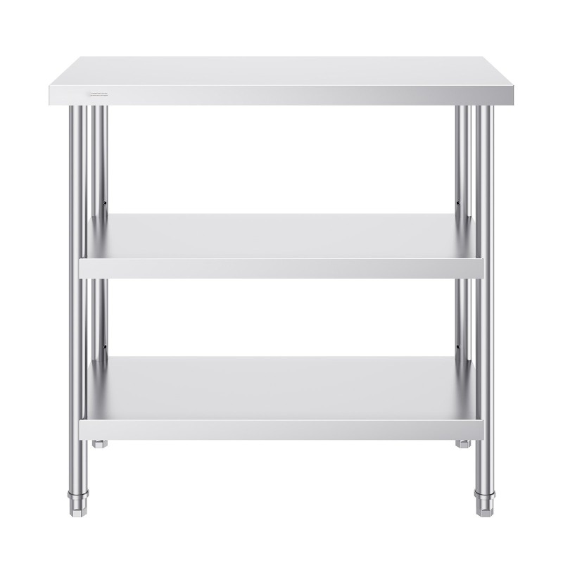 - Materiaali: ruostumaton teräs SUS201 pöytätasossa, hyllyssä ja jaloissa