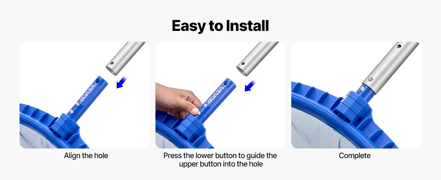 Haavit ja harjat ovat yhteensopivia useimpien 1¼-tuumaisten vakiomittaisten uima-allastankojen kanssa. Kiinnitys on yksinkertaista, joten osat saa nopeasti käyttöön. Huomioithan, että tangot eivät sisälly pakkaukseen.