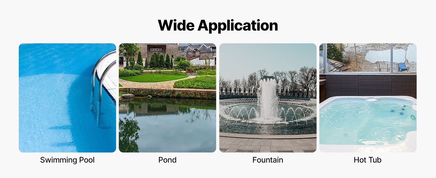 - Soveltuu uima-altaisiin, porealtaisiin, suihkulähteisiin, lampiin ja muihin vesikohteisiin