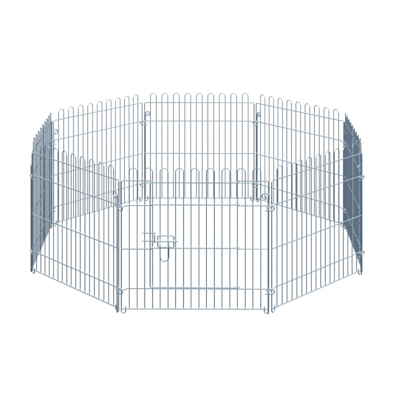 Ulkoaitaus pennuille ja pieneläimille, metallinen, 8 paneelia, 63 x 60 cm, hopea