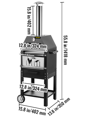 Puulämmitteinen ulkopizzauuni SRWP001, pellettipizzauuni, 2-tasoinen, siirrettävä, musta, max 540°C