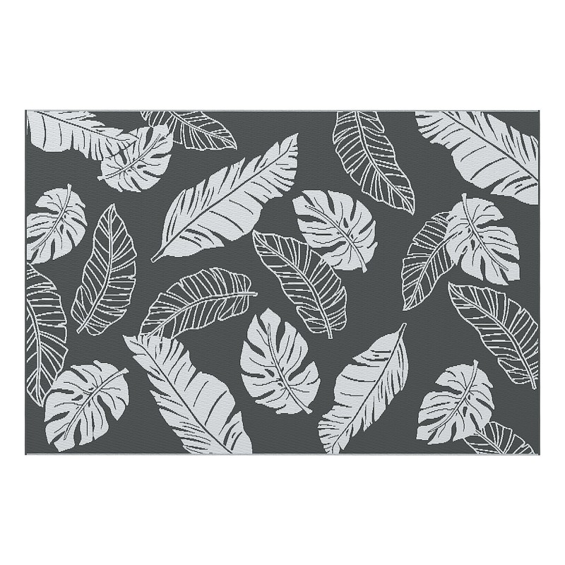 Ulkokäyttöön vedenpitävä käännettävä matto lehtikuvio 182x274 cm harmaa/valkoinen