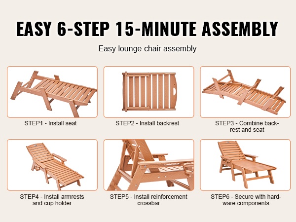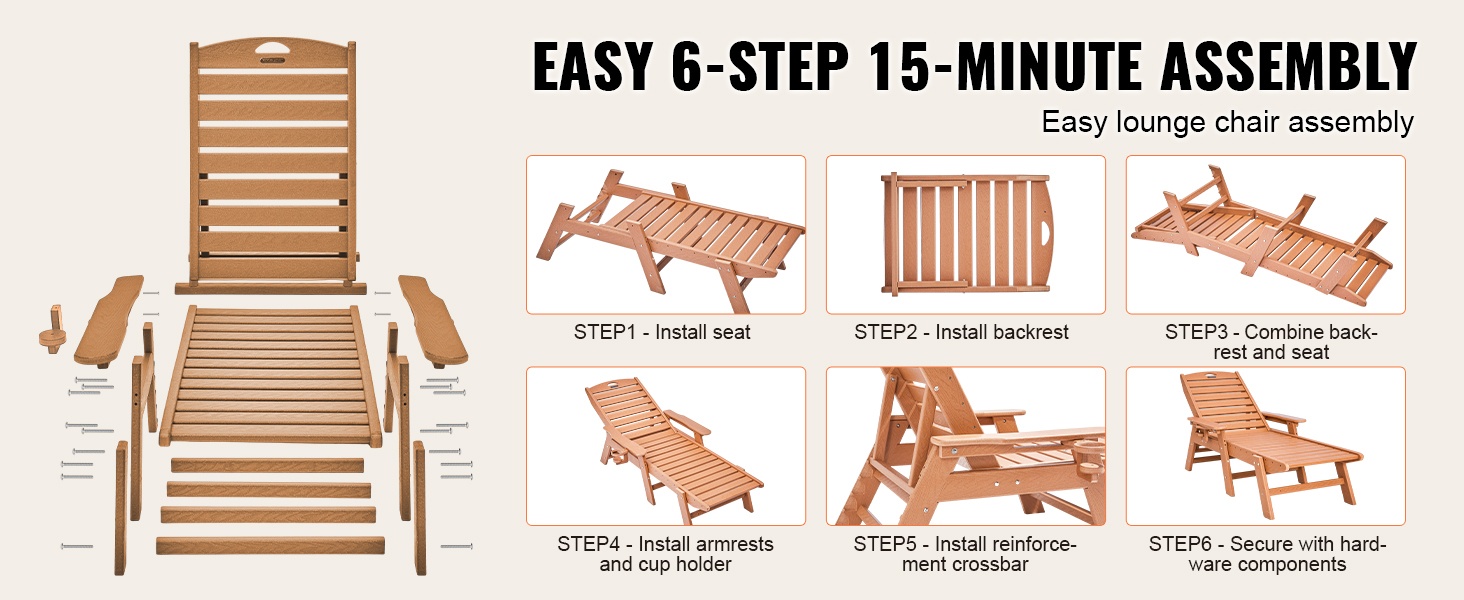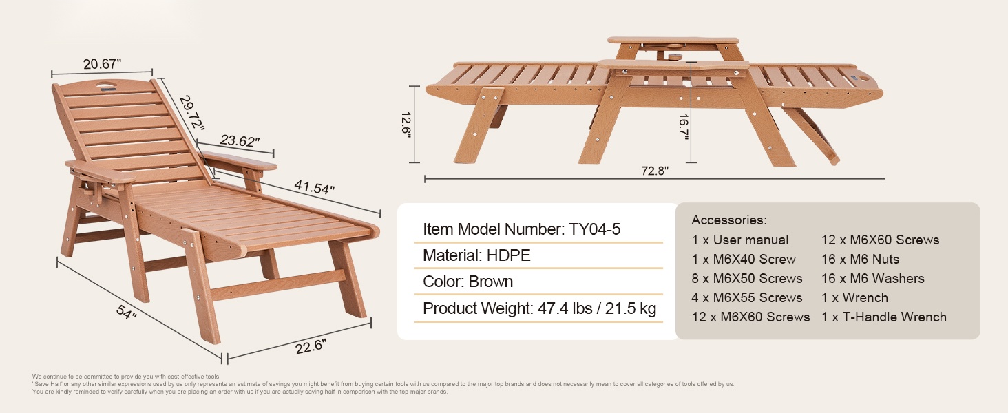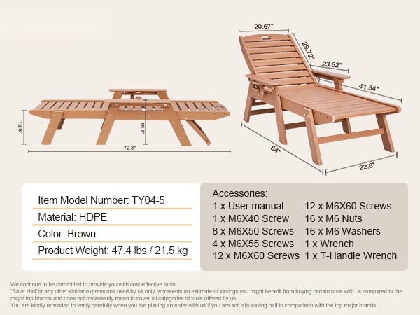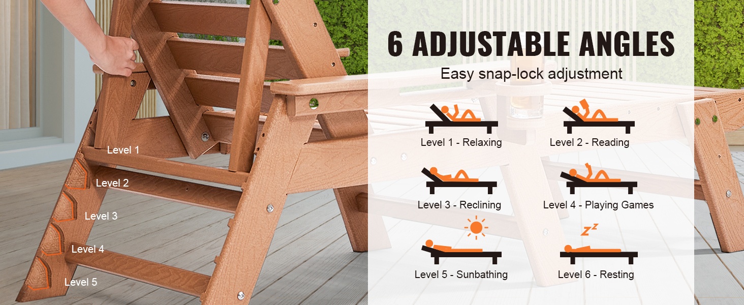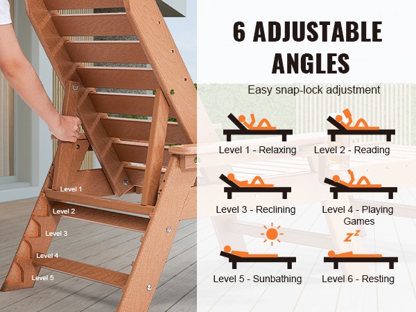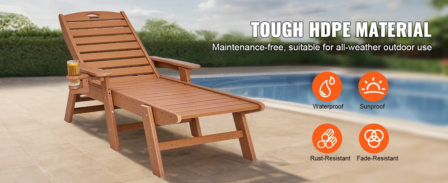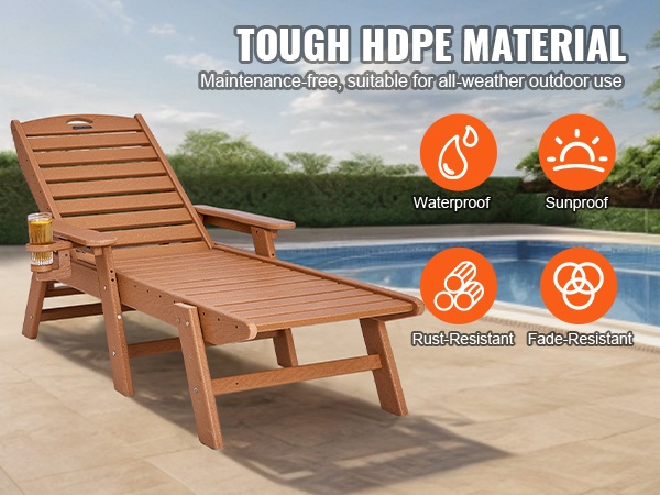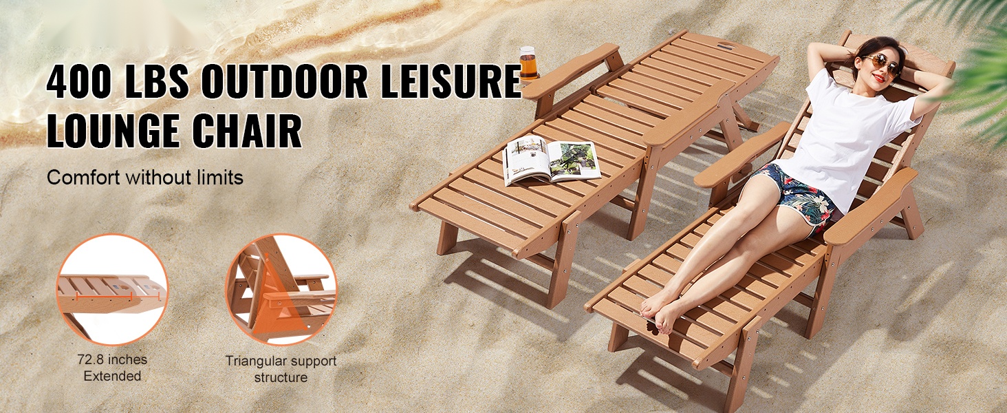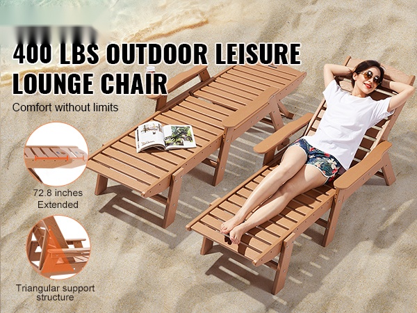 Tämä säädettävä lepolasse tarjoaa runsaasti tilaa rentoutumiseen. Pituus on 72.8 tuumaa, joten sekä istuminen, loikoilu että makuuasento onnistuvat mukavasti. Suurin kantavuus on 400 lbs (noin 181 kg), joten tuoli sopii monenkokoisille käyttäjille terassille, uima-altaalle, laiturille tai puutarhaan.