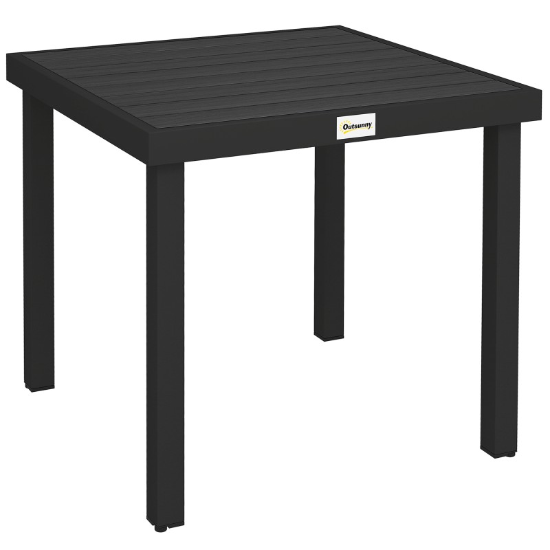 Ulkopöytä 4 hengelle, alumiinirunko ja muovisäleet, 78 x 78 x 74 cm, musta