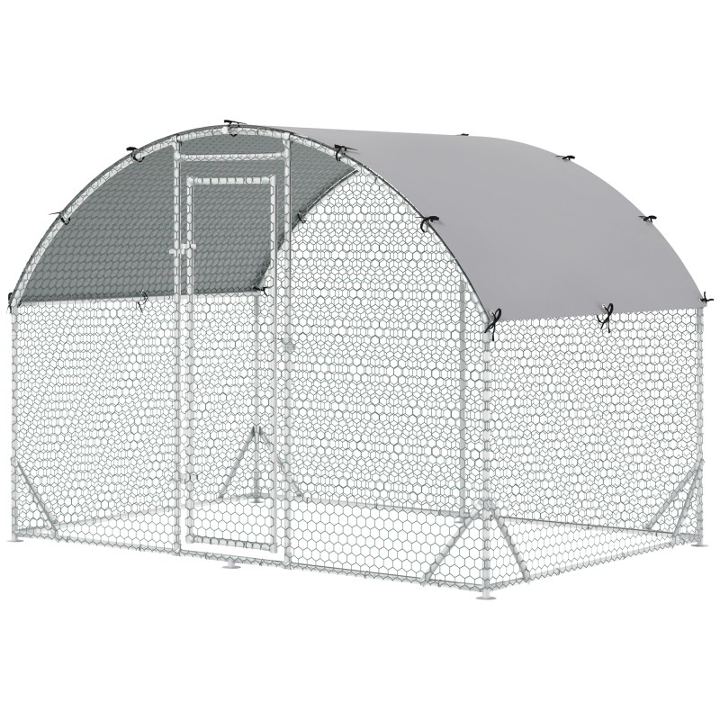 Ulkotarha pieneläimille, kanien ja kanojen aitaukseen, teräsrunko ja Oxford-kangaskate, 280 x 190 x 197 cm, silver