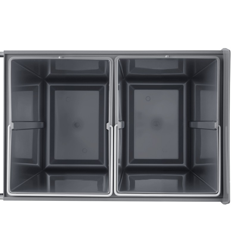 Tämä kaapin sisään asennettava ulosvedettävä jäteastia helpottaa lajittelua ja pitää keittiön siistinä. Kaksoissäiliöt tarjoavat yhteensä 20L x 2 tilavuutta, ja tukeva liukukisko tekee käytöstä sujuvaa myös täyteen kuormitettuna.