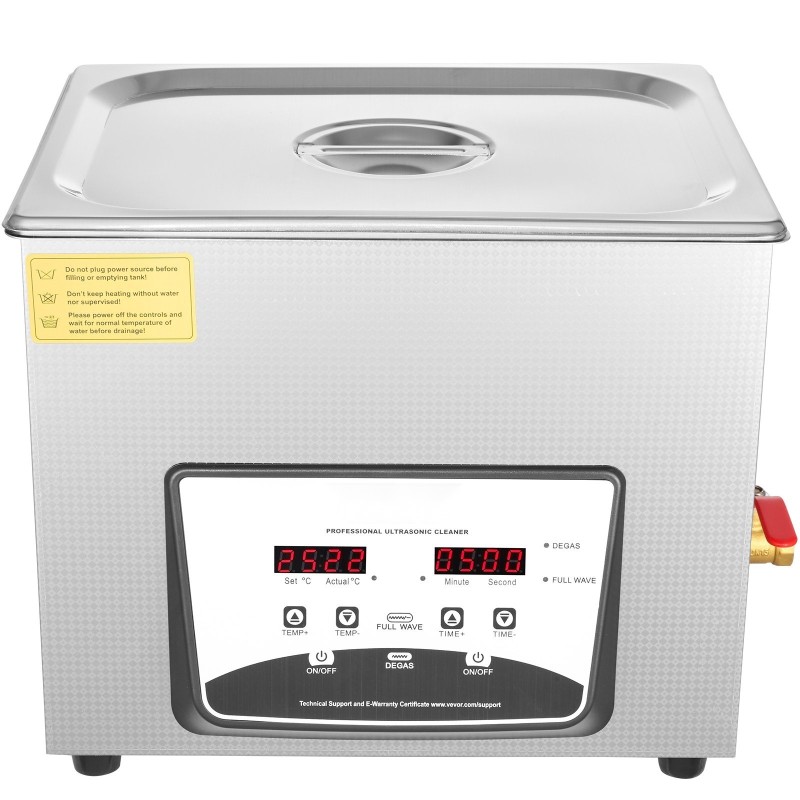 Tämä 10L ultraäänipesuri puhdistaa korut, kellot, silmälasit, hammasproteesit, pienet metalliosat ja monet muut arvoesineet perusteellisesti, mutta hellävaraisesti. Laitteessa on kaasunpoisto-, lämmitys-, puoliaalto- ja ajastintoiminnot, joiden ansiosta lika, öljy ja sakka irtoavat vaikeistakin paikoista ilman mekaanista hankausta.
