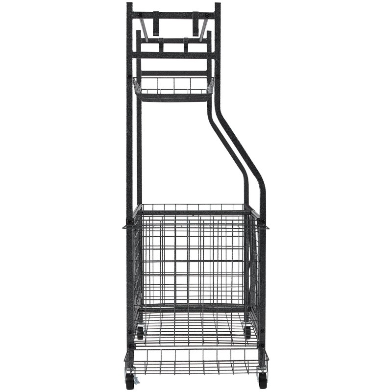Monikäyttöinen urheiluvälinevaunu auttaa pitämään pallot, mailat, varusteet ja lelut hyvässä järjestyksessä niin autotallissa, kotona kuin sisä- ja ulkoliikuntatiloissa. Teräsrakenteen, korien, koukkujen ja joustonauhojen ansiosta tavarat löytyvät helposti ja lattiatila pysyy vapaana.