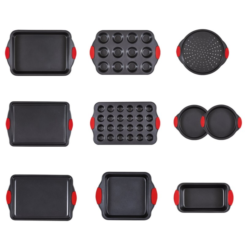 Uunivuokasetti 10-osainen hiiliteräksinen tarttumattomalla Teflon-pinnoitteella 7 suorakulmaista ja 3 pyöreää vuokaa