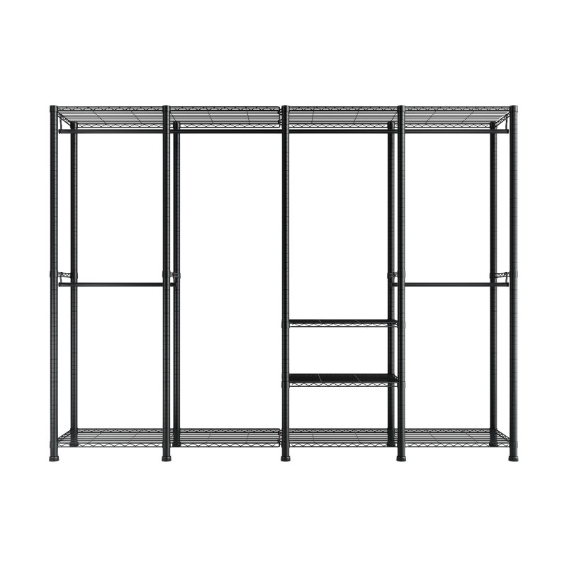Tämä vaateräkki tarjoaa runsaasti säilytystilaa ja on valmistettu tukevasta hiiliteräksestä. Korkeussäädettävät hyllyt mukautuvat erikokoisille vaatteille, joten saat joustavan ratkaisun niin arki- kuin sesonkivaatteillekin. Nopea, työkaluton kokoaminen helpottaa tilan järjestämistä makuuhuoneessa, vaatehuoneessa, kodinhoitohuoneessa tai myymälässä.