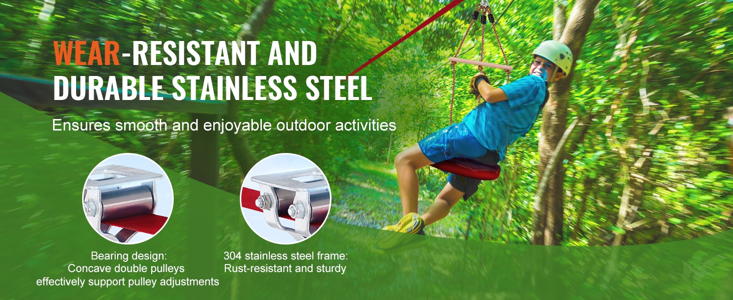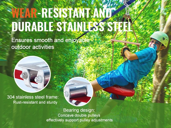 Tämä vaijeriliukusarja on valmistettu laadukkaista materiaaleista, jotta lasten leikki olisi mahdollisimman turvallista. Mukana tuleva keinun istuin ja ohjaustanko tekevät liu’usta mukavan ja tukevan sekä lapsille että aikuisille.