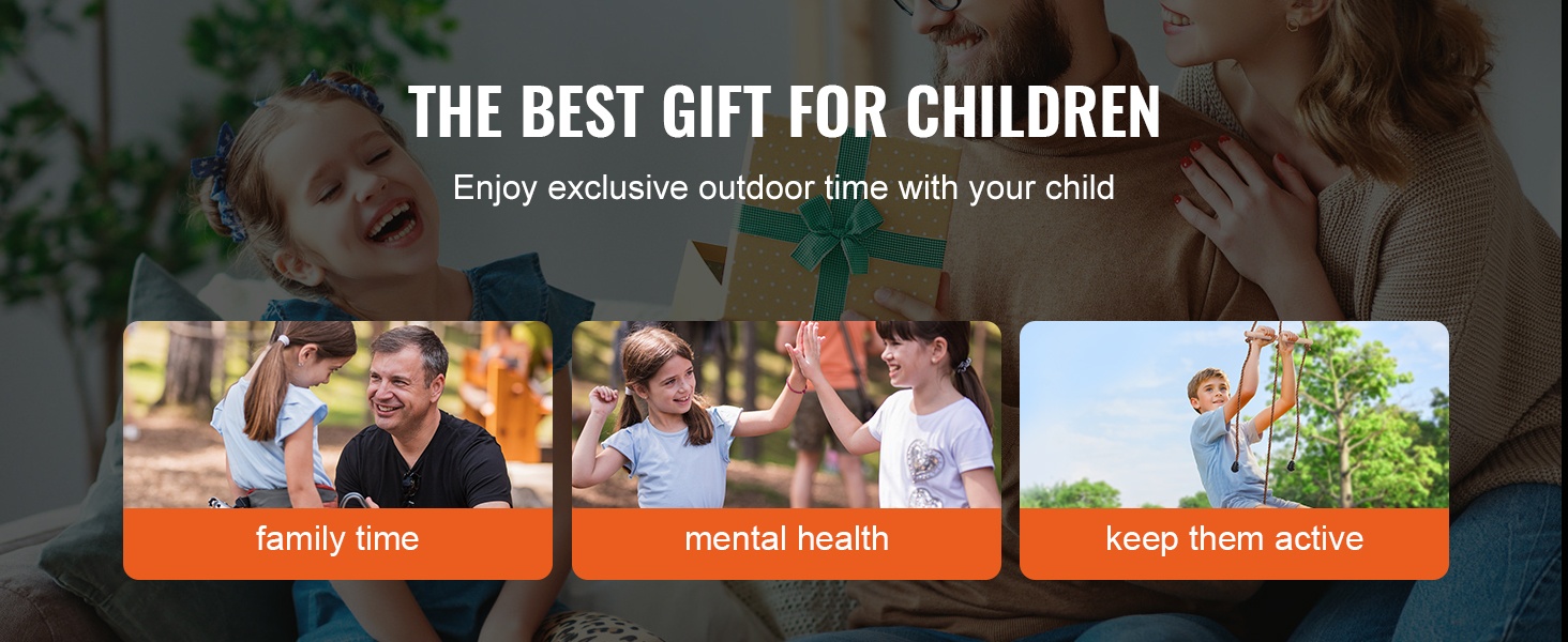 Tämän lasten vaijeriliukusarjan avulla tavallisesta pihasta tulee nopeasti oma leikkipuisto. Asennus on selkeä, joten aikuinen voi osallistua asentamiseen ja leikkiin yhdessä lapsen kanssa. Samalla se kannustaa liikkumaan ja kehittää tasapainoa ja koordinaatiota.