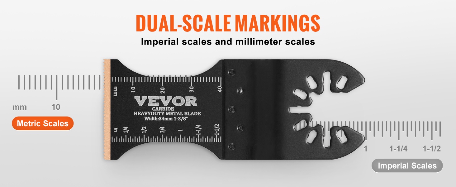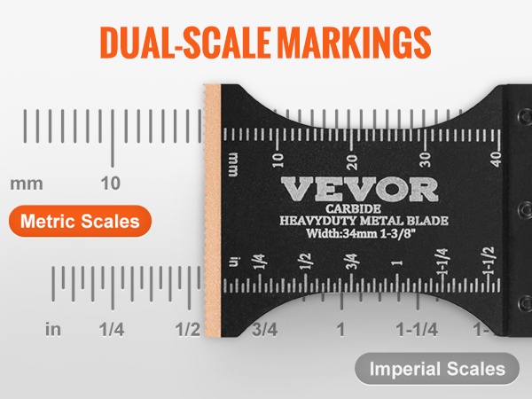 Sisäänrakennetut pituusmerkinnät molemmin puolin terää: toisella puolella tuumat, toisella senttimetrit. Tämä helpottaa ja nopeuttaa tarkkojen leikkausten tekemistä eri projekteissa.