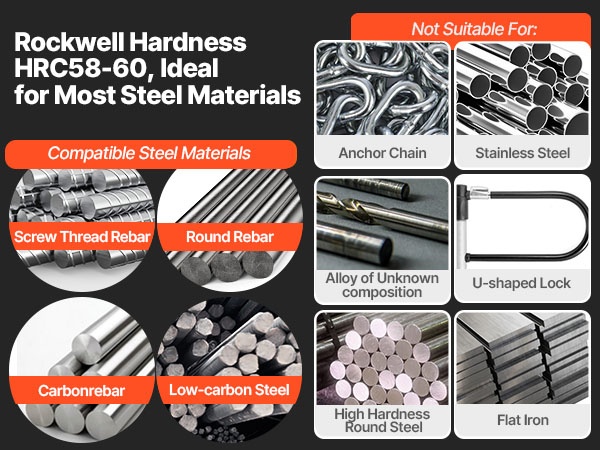 Toimitukseen sisältyvä asennussarja helpottaa asennusta, eikä lisätyökaluja tarvita perusasennukseen. Terät soveltuvat erityisesti pyöreän teräksen, hiiliteräksen ja muokattujen harjaterästankojen leikkaamiseen. Tarkka viimeistely auttaa saavuttamaan siistin leikkausjäljen ja tasaisen työnjäljen.