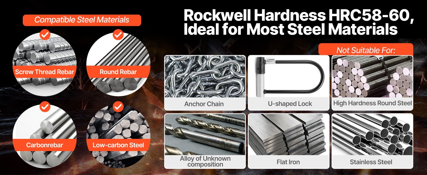 - Soveltuu pyöreälle teräkselle, hiiliteräkselle ja muokatuille harjaterästangoille