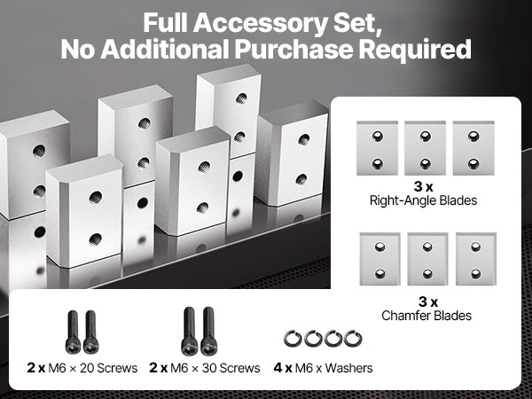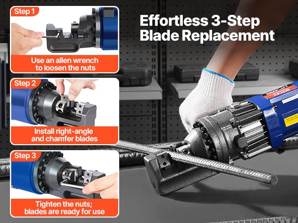 Varausterät on suunniteltu käytettäväksi 5/8-tuumaisen 16mm #5 sähköisen harjateräsleikkurin kanssa. Tarkasti koneistetut terät tarjoavat vahvan leikkauskyvyn ja tasaisen katkaisun erilaisille teräsmateriaaleille. Terät on helppo vaihtaa muutamassa sekunnissa löysäämällä ruuvit, vaihtamalla terä ja kiristämällä ruuvit takaisin.