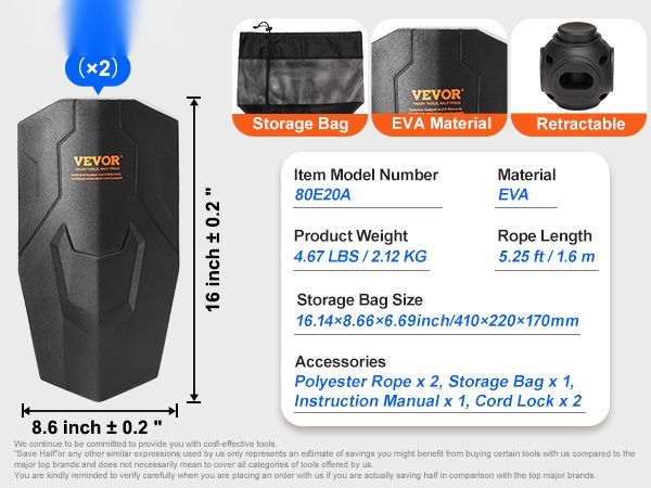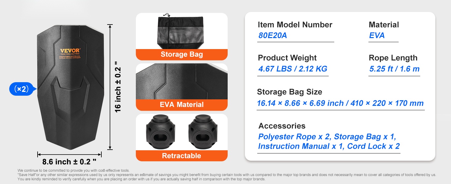 - Säilytyspussin koko: 16.14×8.66×6.69" / 410×220×170mm