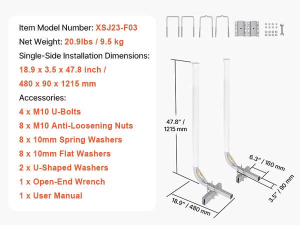 Ohjainpylväspaketti tarjoaa kaksi kiinnitystapaa ja siinä on säädettävät U-pultit, jotka sopivat erilevyisille trailerin runkopalkeille. Tämä rakenne varmistaa tukevan ja vakaan asennuksen ja estää ohjainpylväitä löystymästä tai heilahtamasta kuljetuksen aikana.