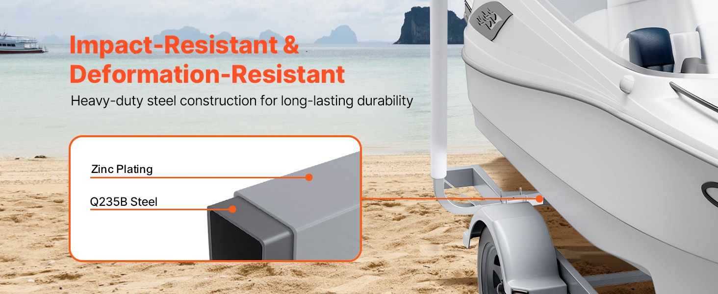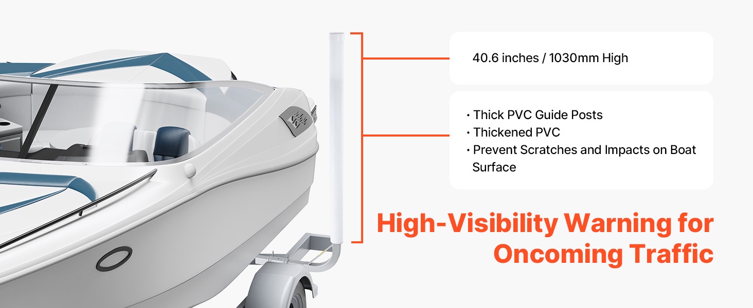 Korkea PVC-pylväsrakenne tekee ohjaimista selkeästi näkyvät lähestyville ajoneuvoille ja helpottaa trailerin hahmottamista myös vedestä käsin. PVC-suojat kosketuskohdissa vähentävät naarmuja veneen pinnassa ja vaimentavat iskuja, mikä tekee lastauksesta pehmeämpää ja hallitumpaa.
