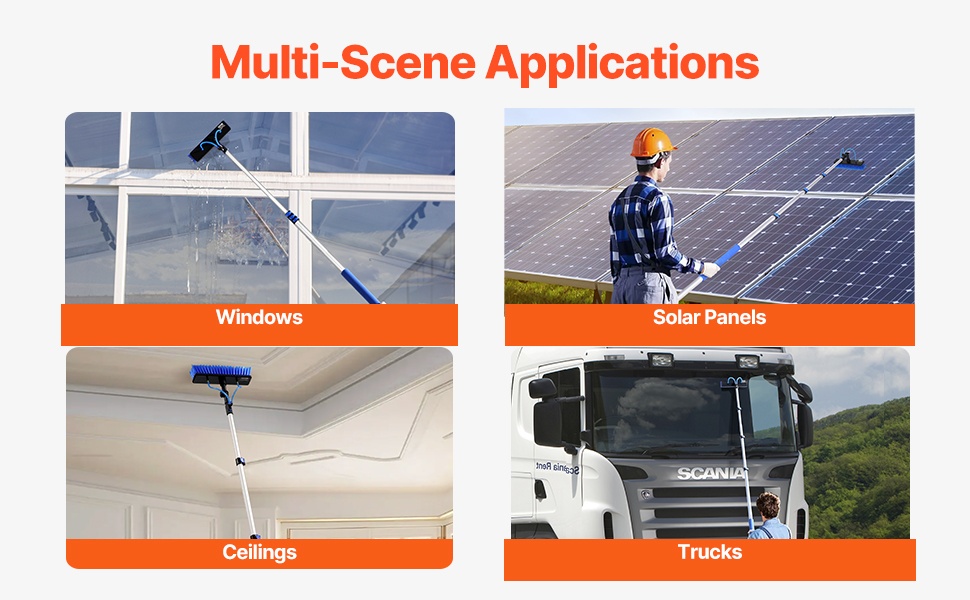 Järjestelmä soveltuu kotitalous- ja ulkokäyttöön: aurinkopaneelien, ikkunoiden, kattojen, lasiseinien, matkailuautojen, kuorma-autojen ja mainostaulujen pesuun sekä muuhun korkealla tai vaikeasti saavutettavissa olevien pintojen puhdistukseen.
