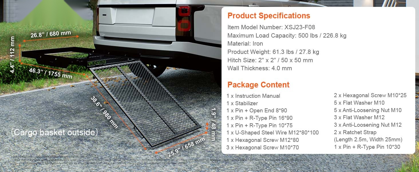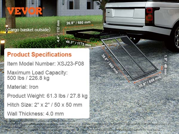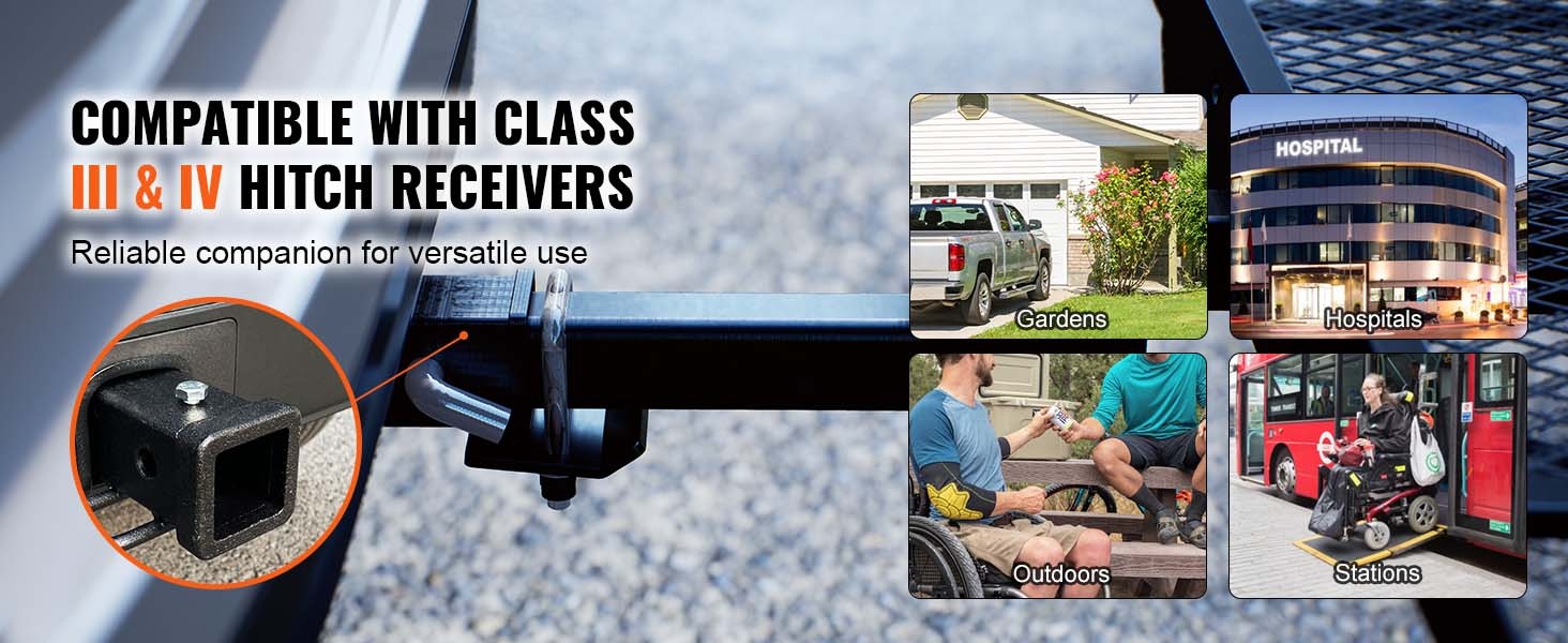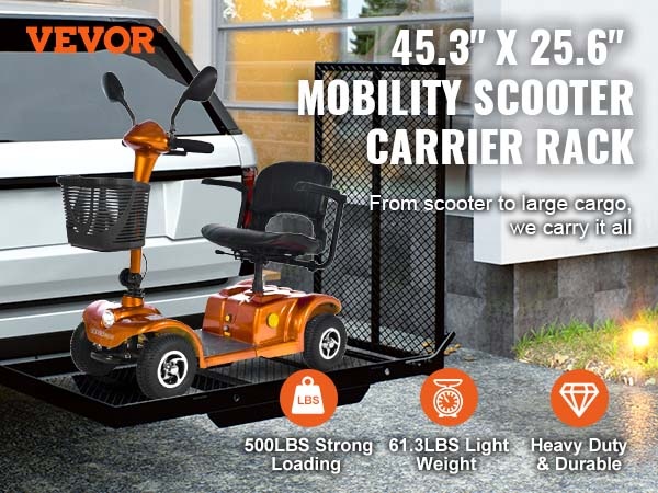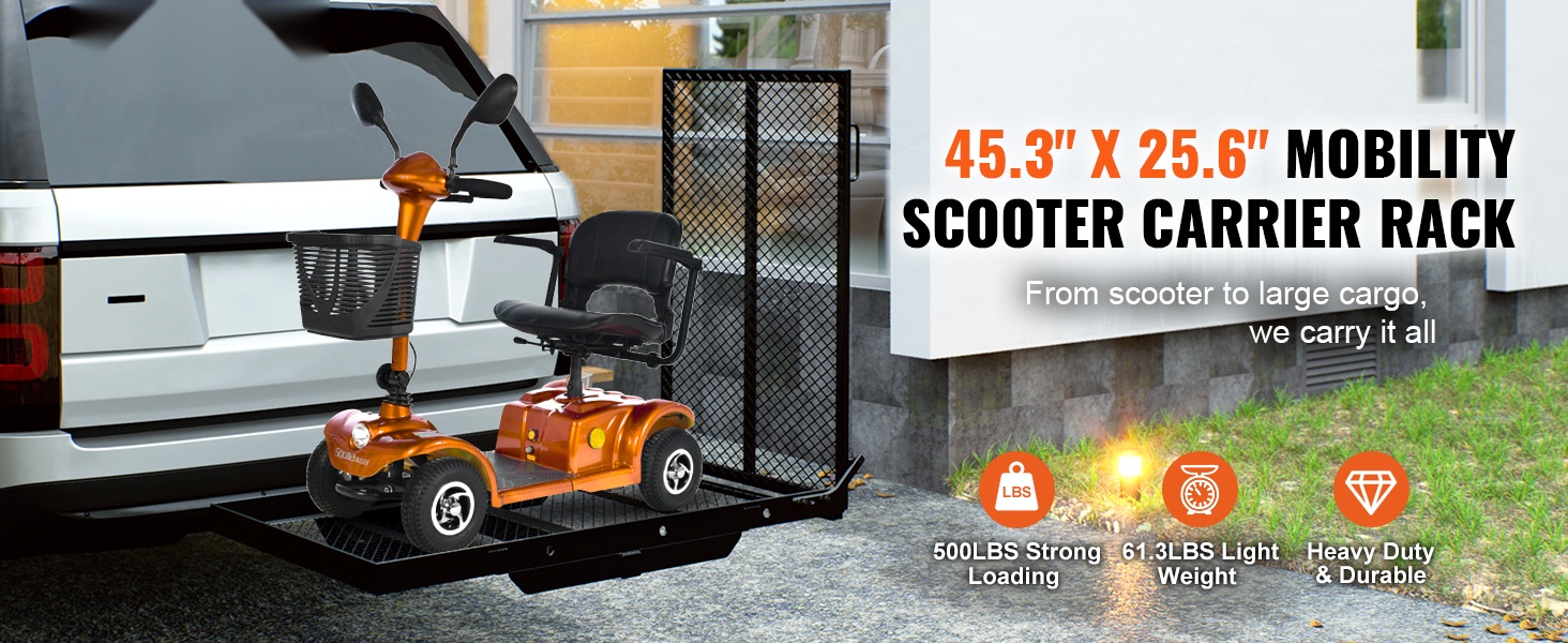 - Kantavuus jopa 500 lbs / 226.8 kg apuvälineille ja matkatavaroille
