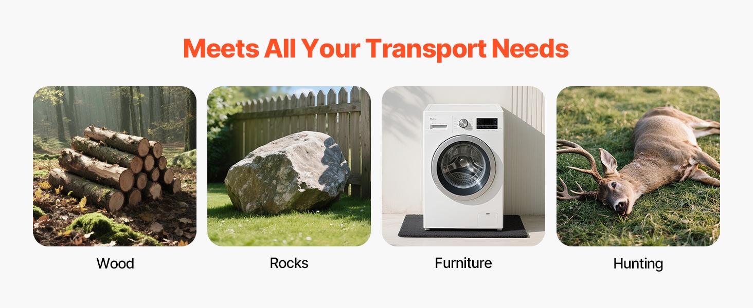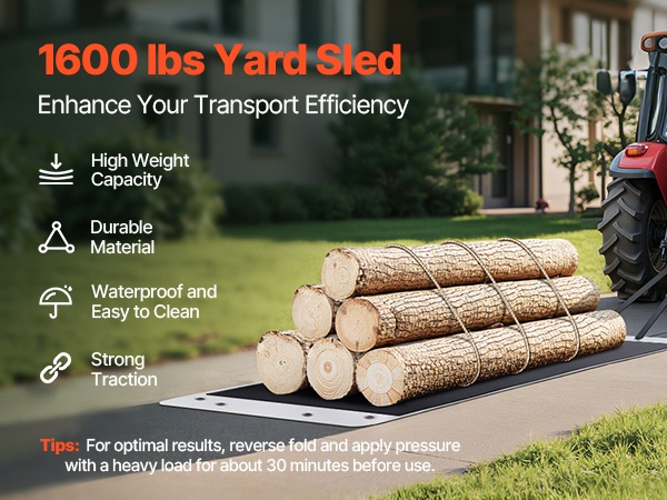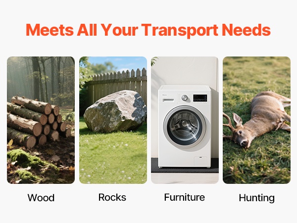 Tämä vetoreki on valmistettu lujasta PE-muovista, joka kestää hyvin kulutusta ja kylmää. Se liikkuu vaivatta erilaisilla alustoilla, kuten soralla, nurmikolla, teillä ja hiekalla. Suuri, jopa 1600 lbs/725.75 kg kantavuus mahdollistaa polttopuiden, kivien, huonekalujen ja muun raskaamman kuorman kuljettamisen tehokkaasti.