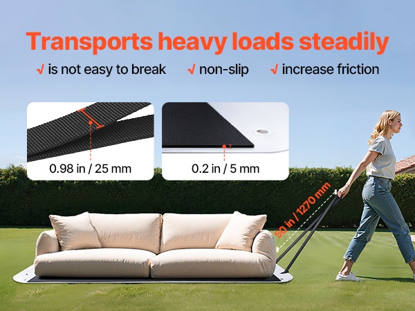 Reessä on kestävät 0.98 tuuman/25 mm hihnat ja liukumaton EVA-materiaali, jotka parantavat kuorman pitoa ja estävät tavaroita liukumasta, vaikka vedät raskaita esineitä epätasaisessa maastossa.