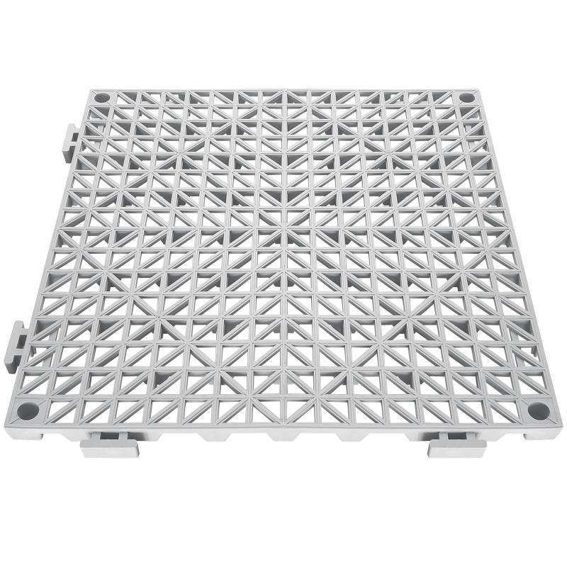 Pidä askeleet vakaana ja lattiat kuivina näillä toisiinsa lukittuvilla PVC-viemäröintilaatoilla. 0,6-tuumaiset (15 mm) korotustapit tehostavat veden poistoa ja vähentävät lammikoiden muodostumista. Laatat tarjoavat hyvän liukuesteen märissäkin tiloissa.