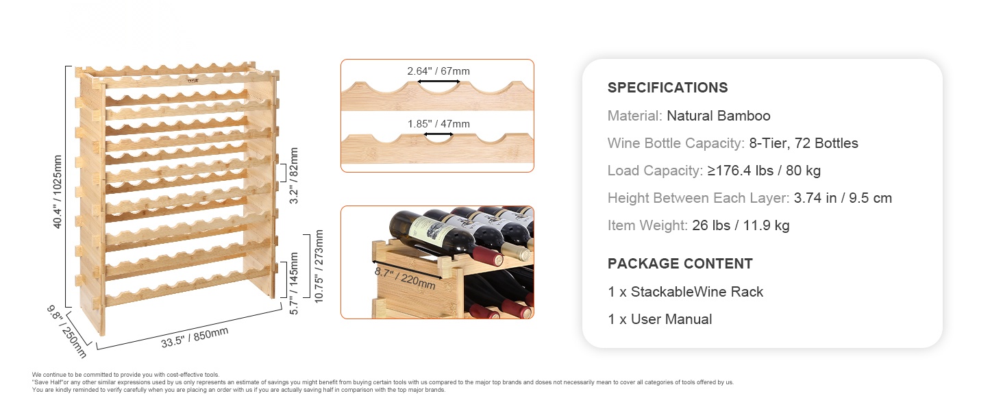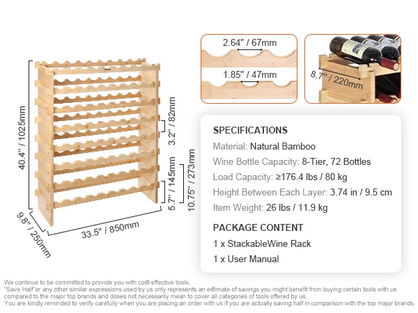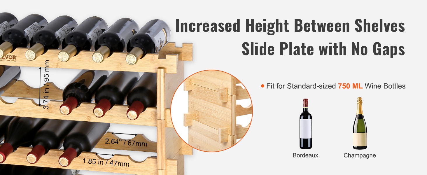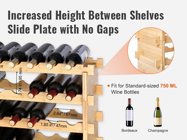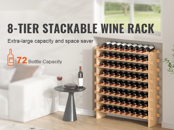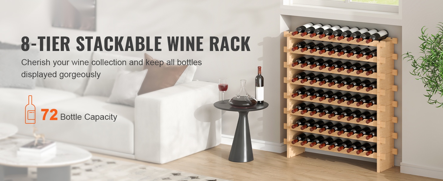 Luonnon bambusta valmistettu 6-tasoinen viiniteline on monikäyttöinen ratkaisu viinipullojen säilytykseen. Se sopii hyvin keittiöön, ruokailutilaan, viinikellariin tai baarin yhteyteen, ja kerroksia voi pinota tarpeen mukaan.